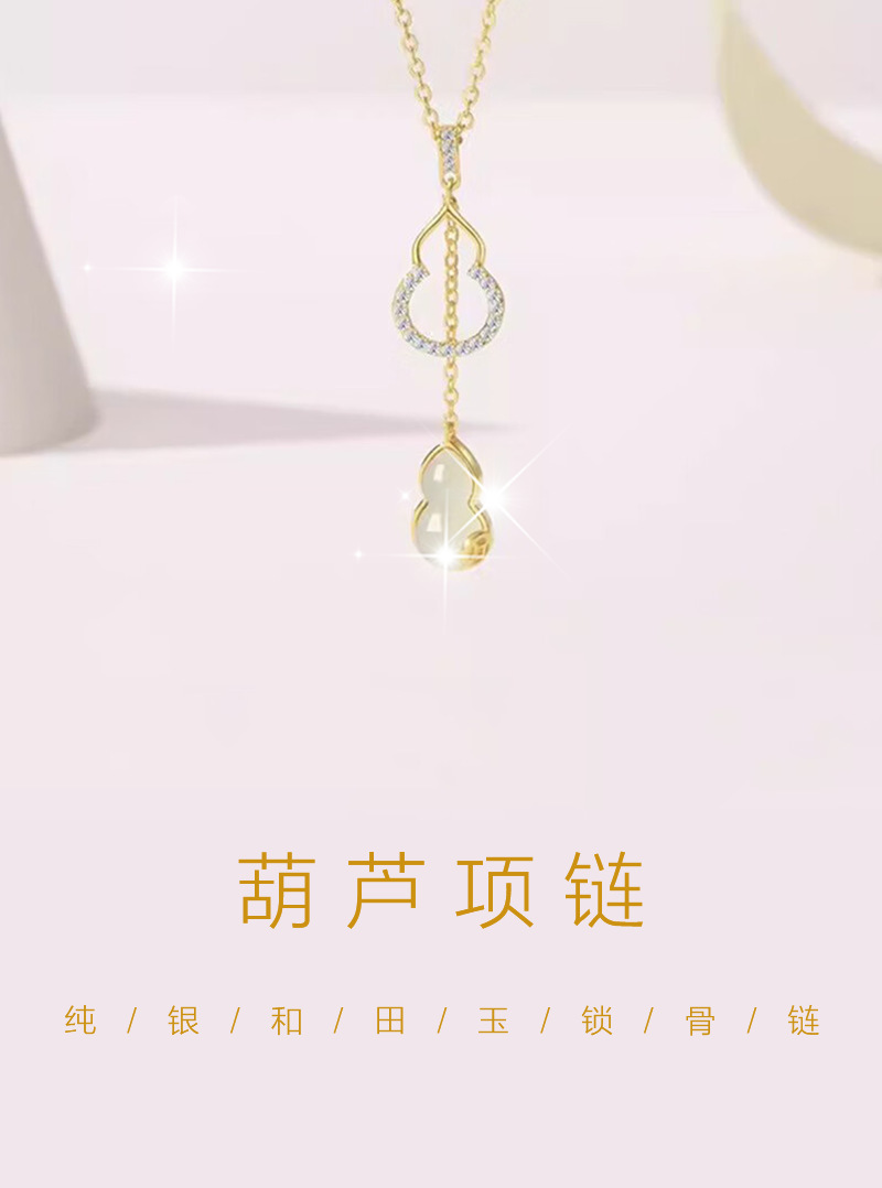 【优化健康-风水饰品】和田玉葫芦项链s925纯银镀18K金白玉吊坠
