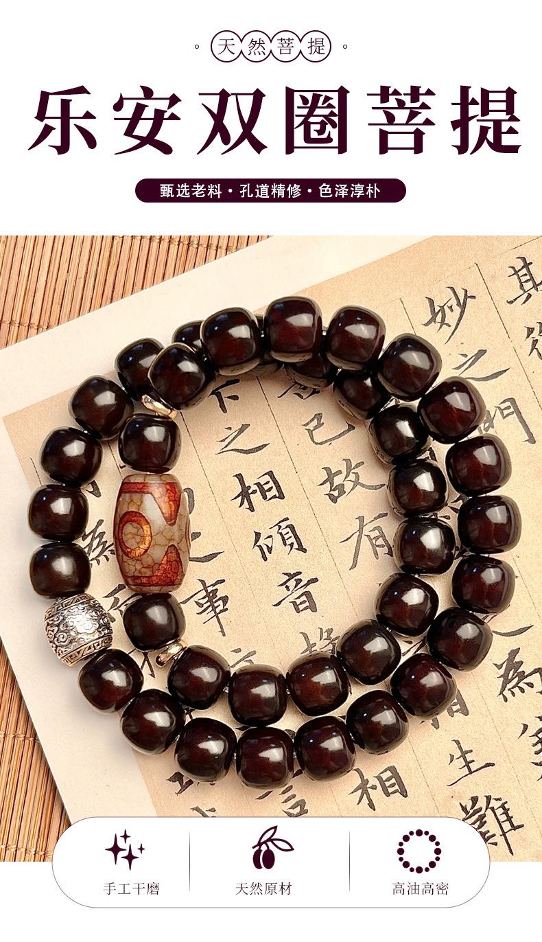 菩提根双圈手链以「轮回共生」为灵感,内环蕴藏生命初始能量,外环凝聚宇宙守护之力,双轨能量流在腕间自成微型风水阵,昼夜循环净化负磁场。