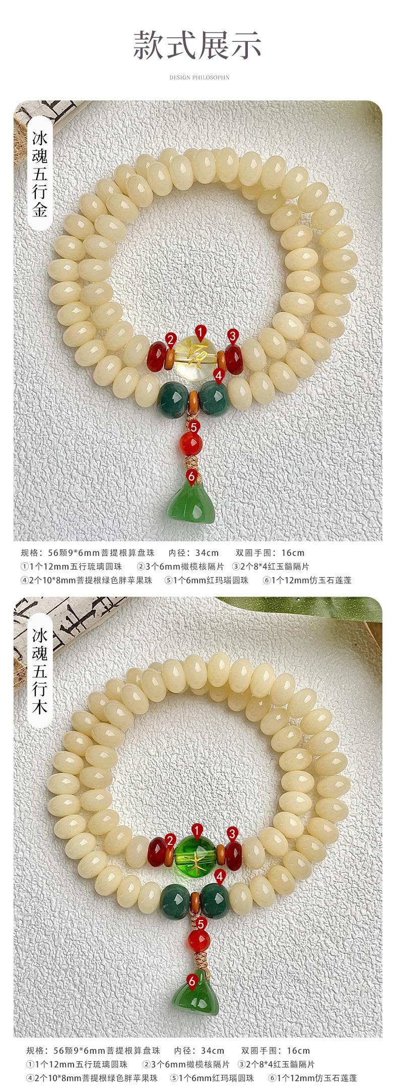 - 五行元素:金、木、水、火、土五色配珠,平衡气场。